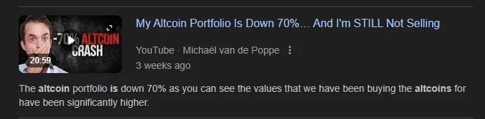 The people still holding those bags (example above) aren't necessarily stupid, but rather they’re entrenched. They Google things like "why will ETH recover" instead of looking at the overwhelming data. They sought out narratives that confirmed what they already believed.